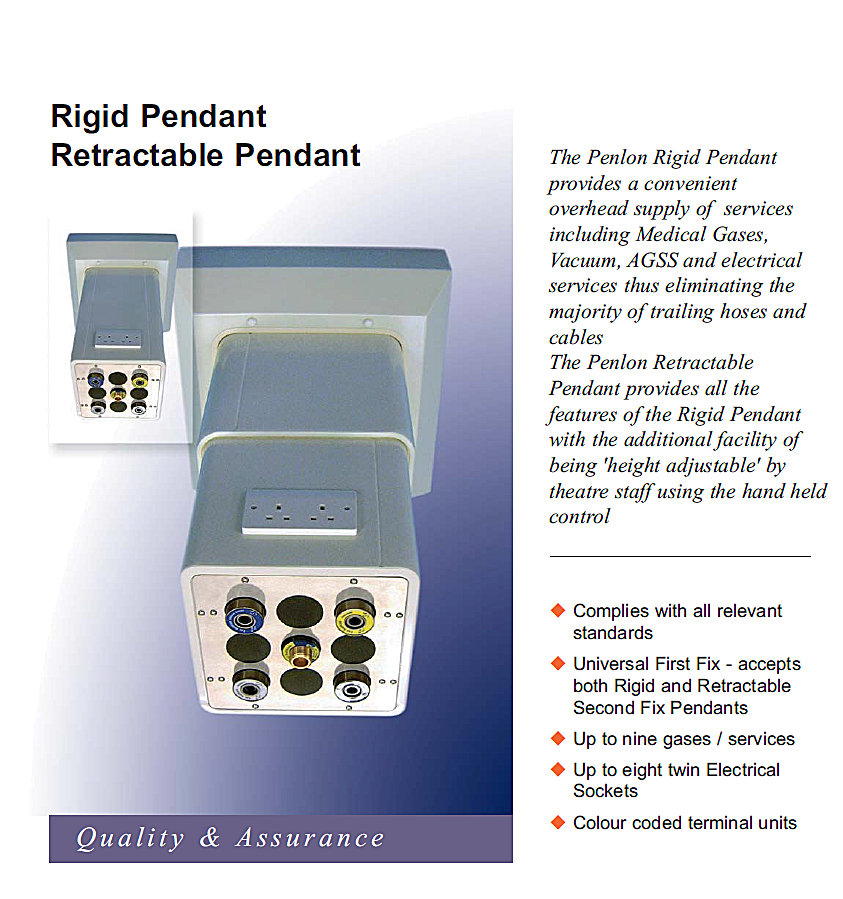 The Penlon Rigid Pendant provides a convinient over head supply of services